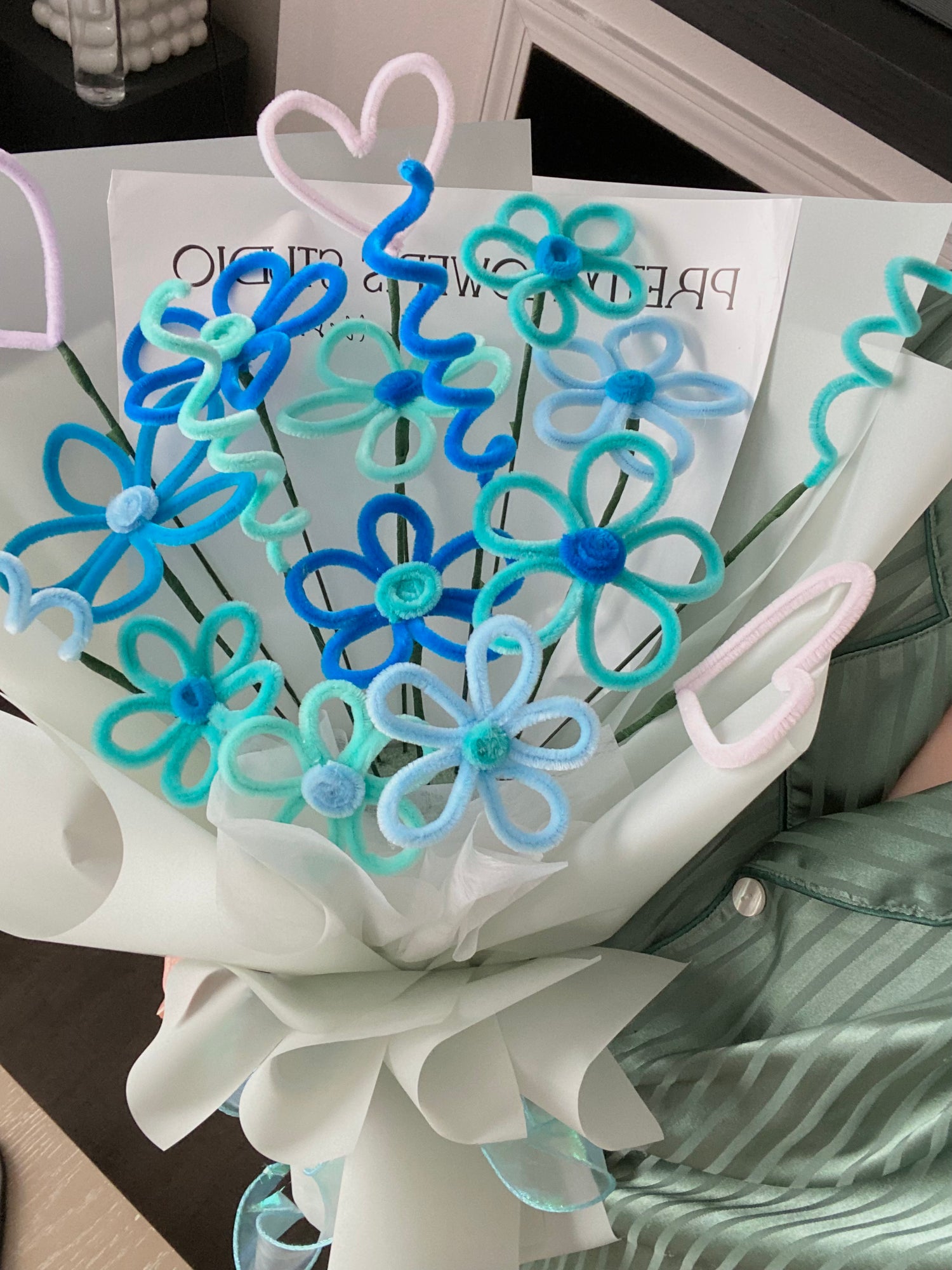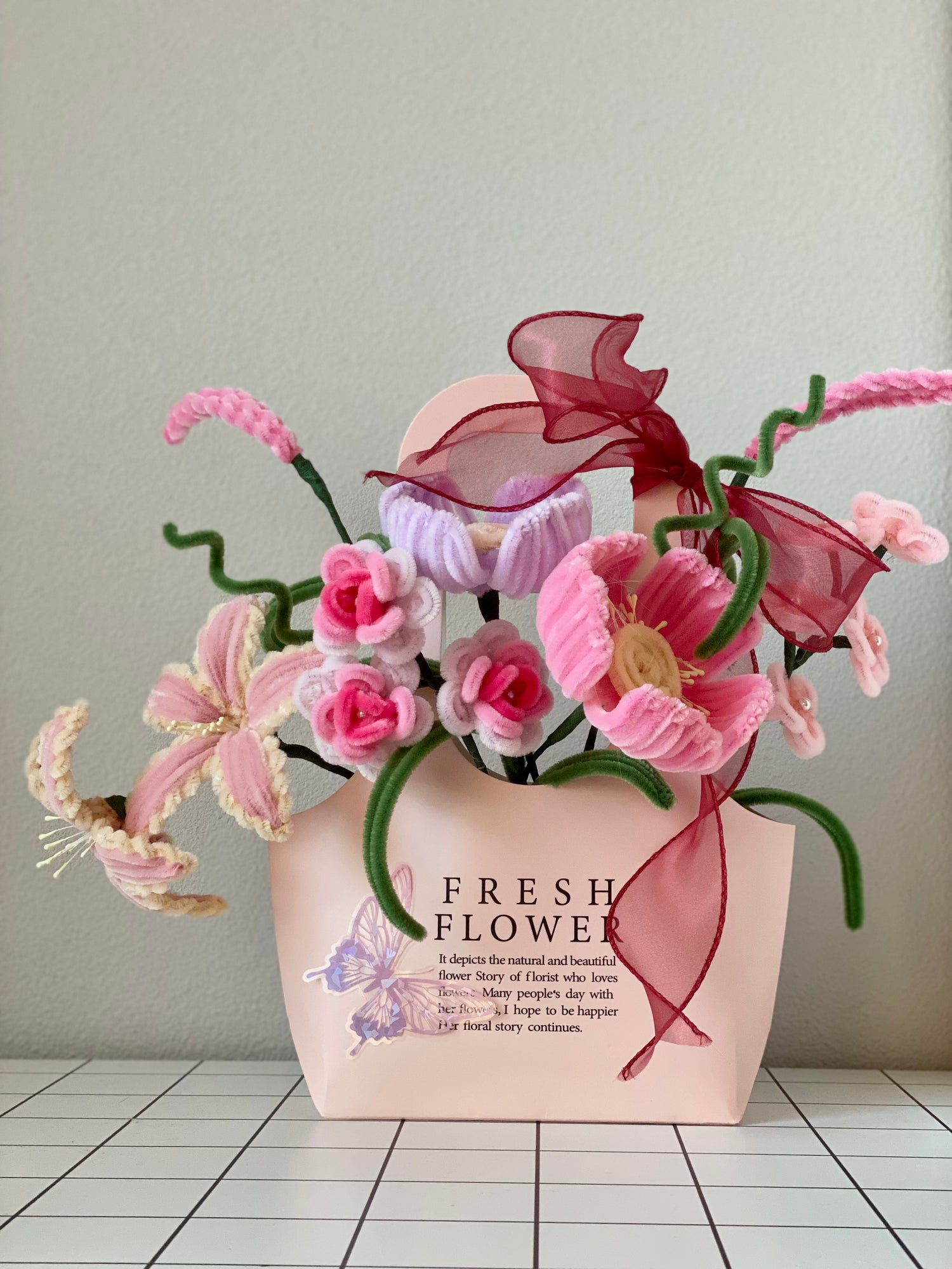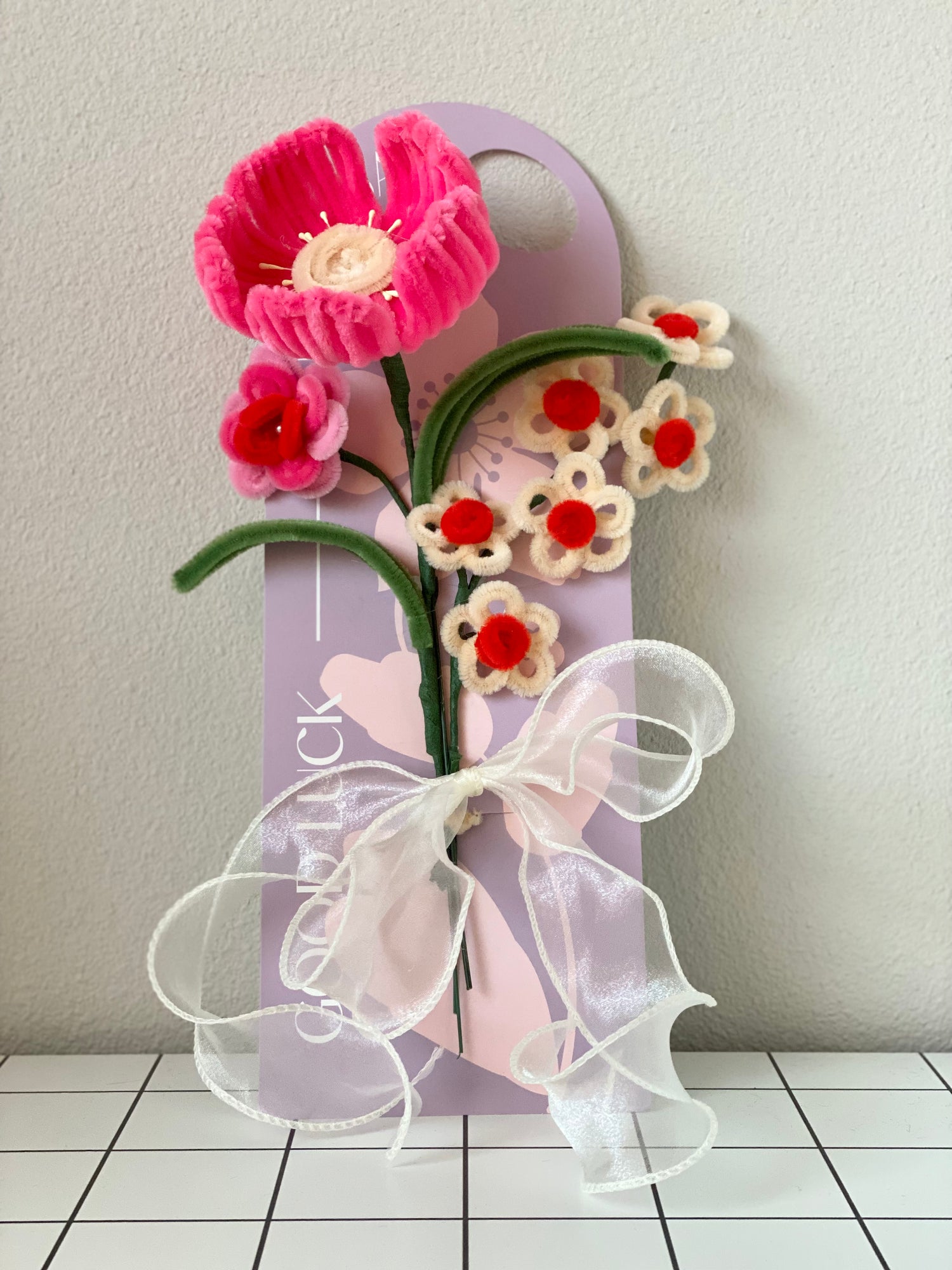 Handmade wire fuzzy flower bouquet & DIY set for crafting magic at home.